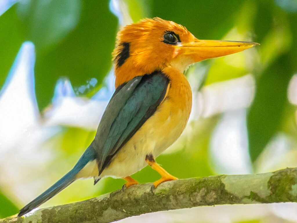 The Yellow-billed Kingfisher (Syma torotoro) is closely related to the Mountain Kingfisher. It inhabits lowland forests and displays striking yellow and green plumage.