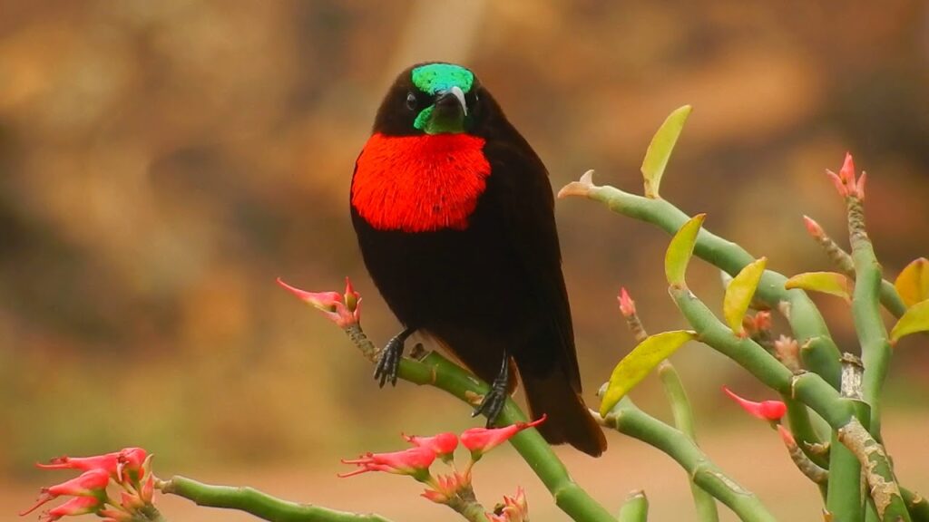 Scarlet-chested Sunbirds are nectar-loving birds with eye-catching colors, found all over parts of Africa. The way they act, where they live, and their conservation status all give a glimpse into how flexible and social they can be.
